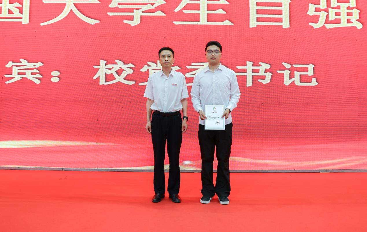 시상식에서 학교 지도자 및 관련대학부서 책임자는 각각 수상 우수 팀과 개인에게 상을 수여했다. 중국 대학생 자강의 별 수상자이자 체육대학 학생인 샤오웨이팅, 국가 장학생이자 10대 당원 대표인 기계공학대학 학생인 쉐스쟈가대표로발언했다.